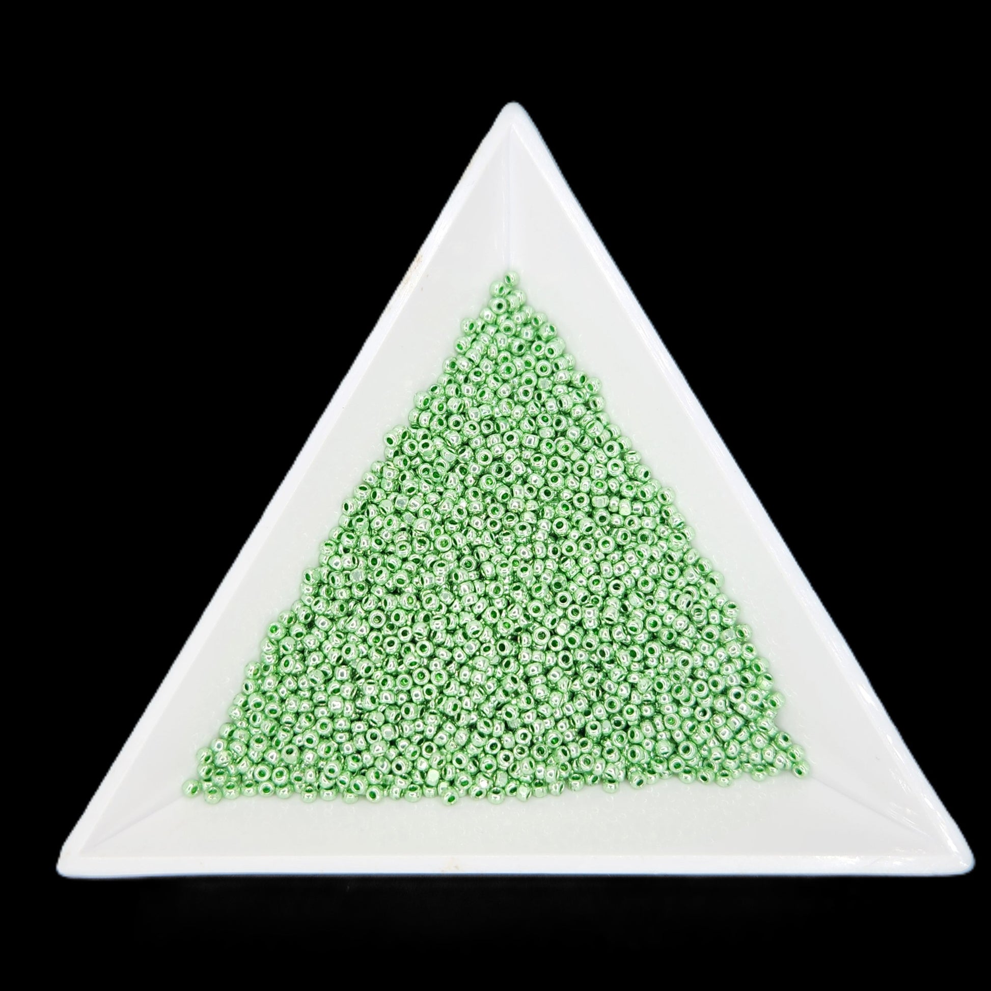 Bold and unique, these Size 13 Czech Charlotte beads in Metallic Green Terra feature a shimmering green metallic surface with an earthy undertone. The single facet catches the light, perfect for bohemian, rustic, or eclectic designs.