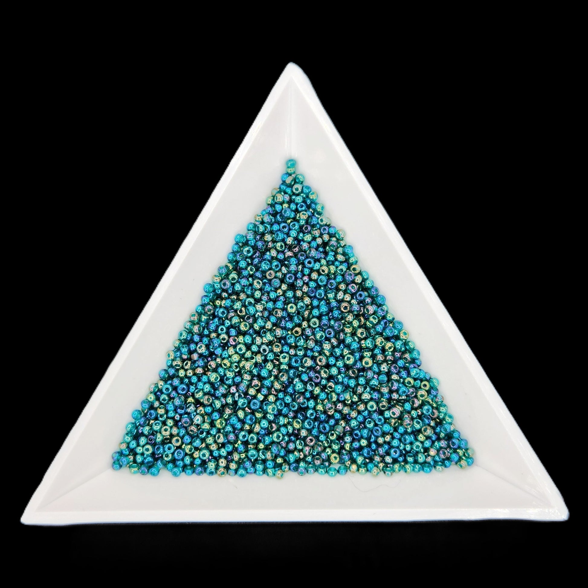 Deep and iridescent, these Size 13 Czech Charlotte beads in Transparent Dark Green AB feature a rich green tone with a rainbow finish. Their single-faceted cut adds sparkle and dimension, ideal for nature-inspired or vibrant multicolor designs.