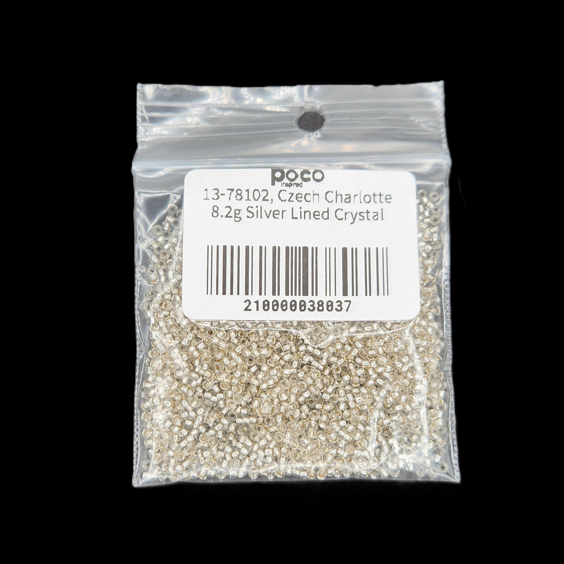 Brilliant and eye-catching, these Size 13 Czech Charlotte beads in Silver Lined Crystal combine clear glass with a reflective silver core. The single facet enhances their dazzling shine, perfect for adding brightness and sparkle to any beadwork.