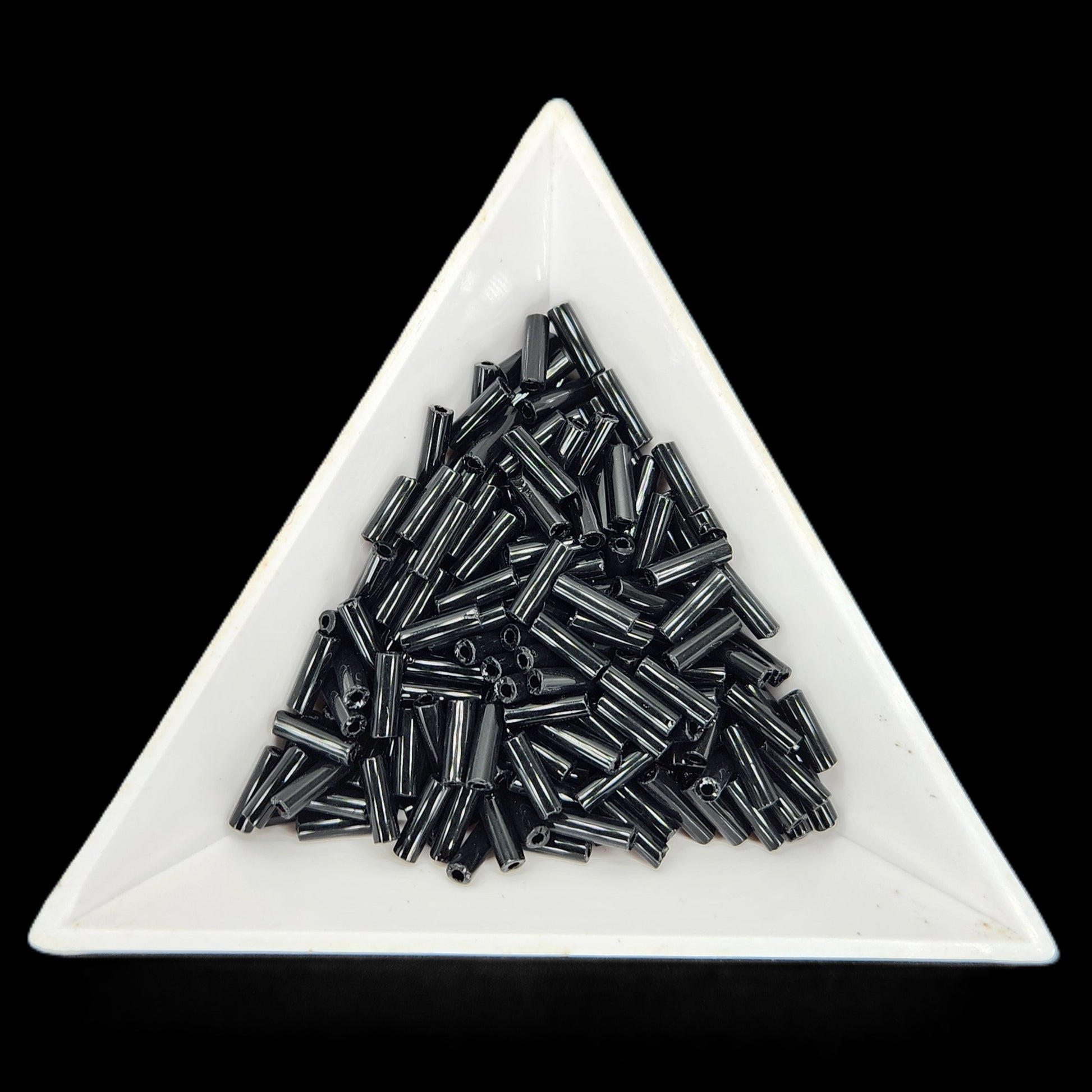 Bugle Beads are tubular glass beads made in the same production manner as seed beads, however they are cut glass rods that have been tumbled for smooth edges.