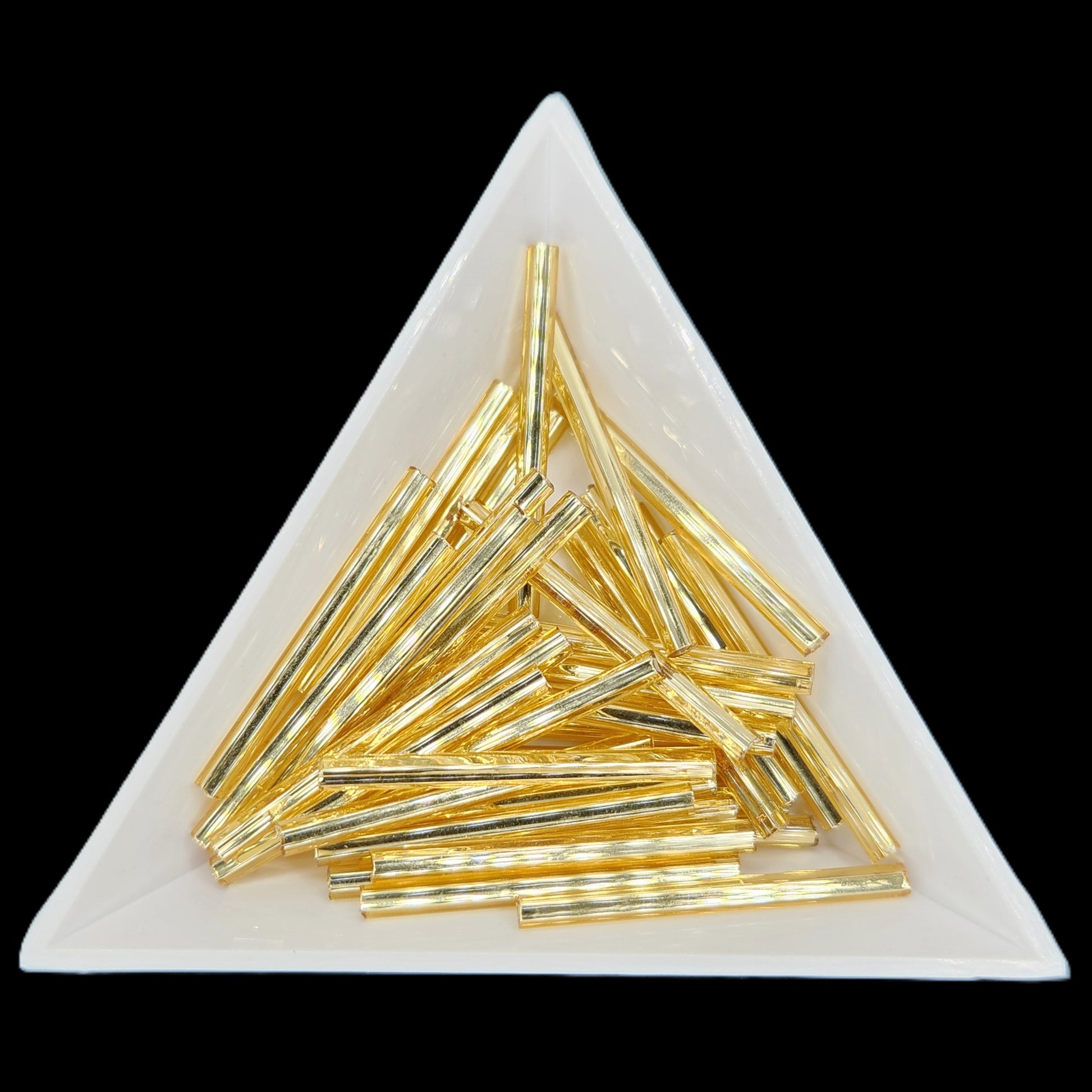 Bugle Beads are tubular glass beads made in the same production manner as seed beads, however they are cut glass rods that have been tumbled for smooth edges.