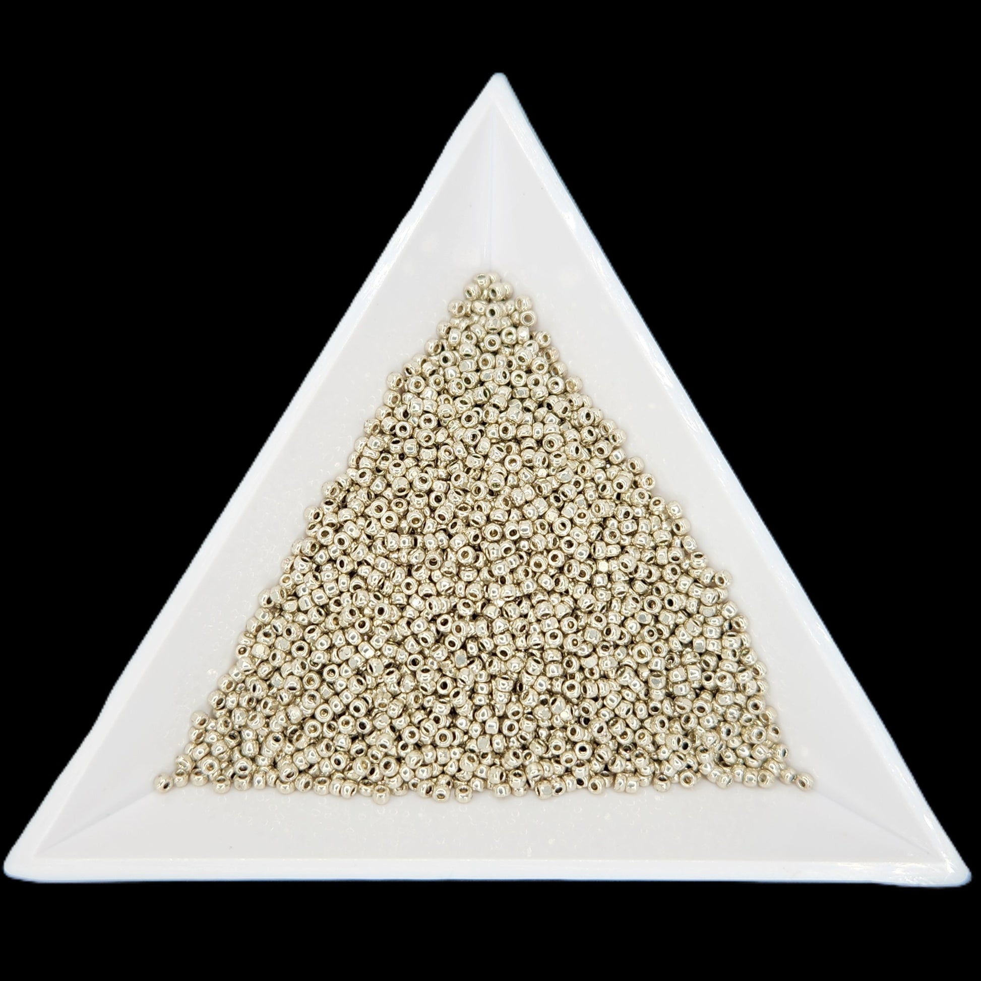 Sleek and modern, these Size 13 Czech Charlotte beads in Metallic Grey Terra feature a shimmering grey tone with a subtle textured effect. The single facet adds extra shine, making them perfect for contemporary or industrial-inspired designs.