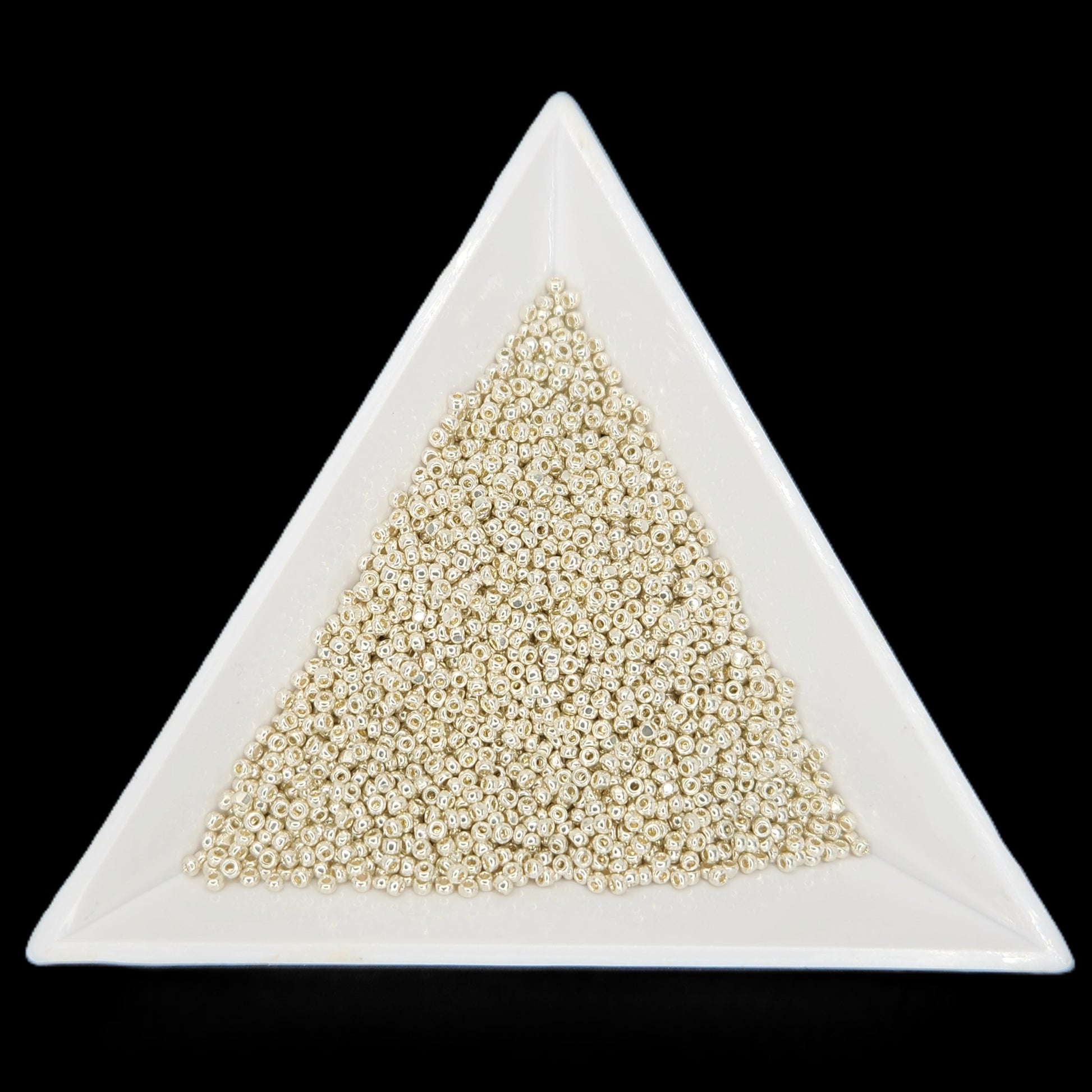 Sleek and modern, these Size 13 Czech Charlotte beads in Metallic Silver Terra feature a shimmering silver finish with a textured look. The single-faceted cut enhances their light play, perfect for contemporary designs and metallic accents.