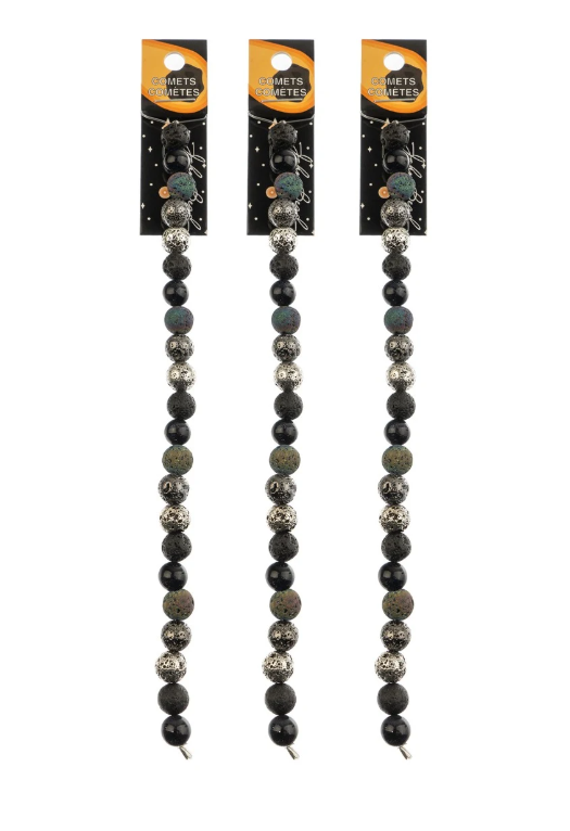 A cosmic selection of glass, semi-precious and metal spacer beads inspired by planetary bodies. Strands available in 10mm, 8mm and 6mm.